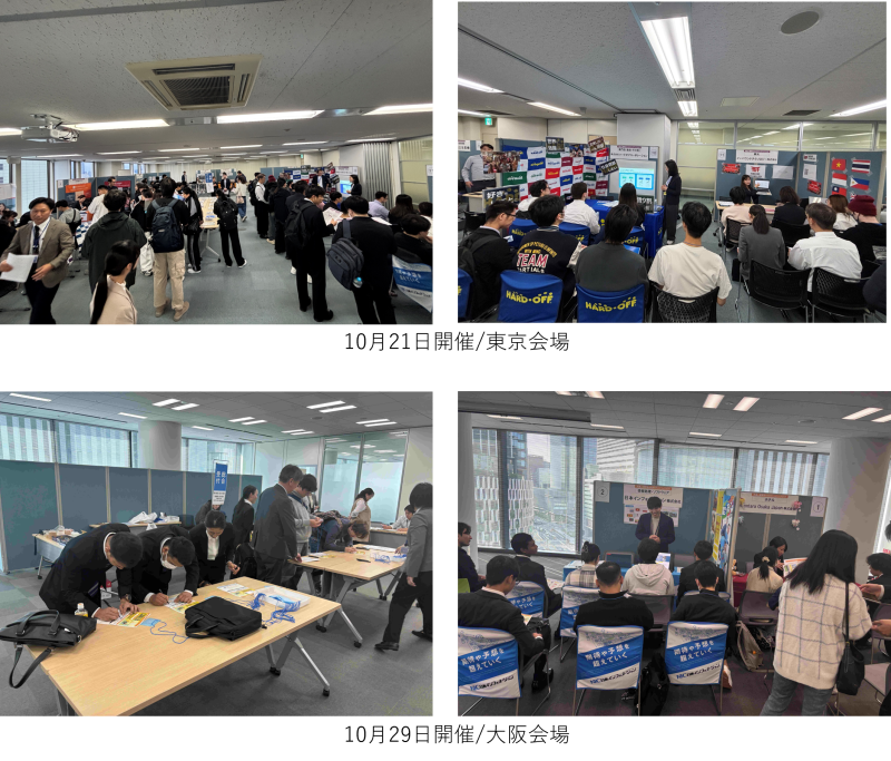 株式会社学生情報センター(本社:京都府京都市、代表取締役社長:𠮷野一樹、以下「ナジック」)は、株式会社アクセスネクステージ(東京都渋谷区、代表取締役社⾧ 増田智夫)、株式会社グローバルトラストネットワークス(東京都豊島区、代表取締役社長 後藤裕幸)と共同で、2025年10月21日(火)に東京・渋谷クロスタワー、10月29日(水)に大阪・アクセス梅田フォーラムにて「外国人留学生のためのキャリアフェア2025」を開催しました。